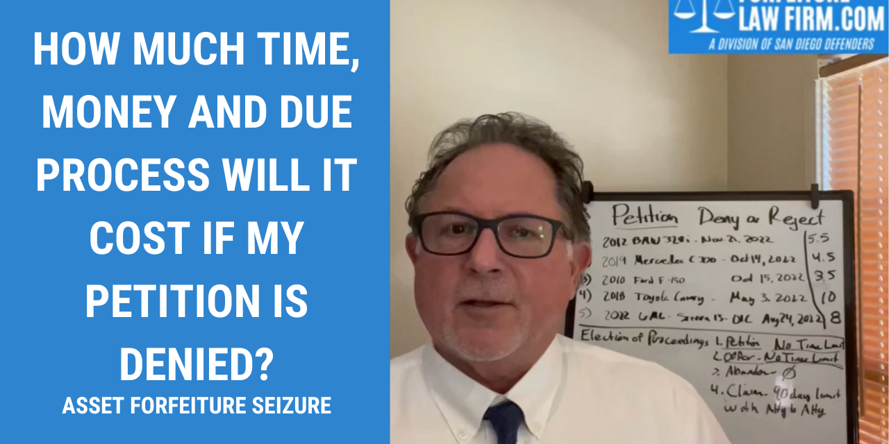 When your car is seized and impounded by U.S. Customs & Border Protection because they detained you or your family for suspicion of alien smuggling, you will receive a Notice of Seizure letter in the mail. The letter will include an Election of Proceedings. Basically, how do you want to try getting your vehicle back? If you file a Petition in mitigation or an Offer in Compromise, you will be giving up a large part of your due process afforded by law. There seems to be no time limit! There seems to be no clear process for how Border Patrol decides if they will give your car back! In the examples in the video, our clients spent anywhere from 3 1/2 months to 10 months more time without their car. They come to us, and we have to withdraw their petition and start from scratch. How long can you go without your car, especially if you’re still making payments? Call us at San Diego Defenders Forfeiture Law Firm at (619) 258-8888, and we’ll explain that this video is not legal advice. However, we have a very, very good track record of getting all the vehicles returned if we accept your case. We do all the work for you, so you don’t step on your own foot! Call us today at (619) 258-8888.